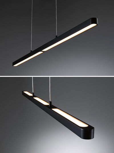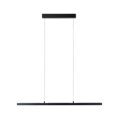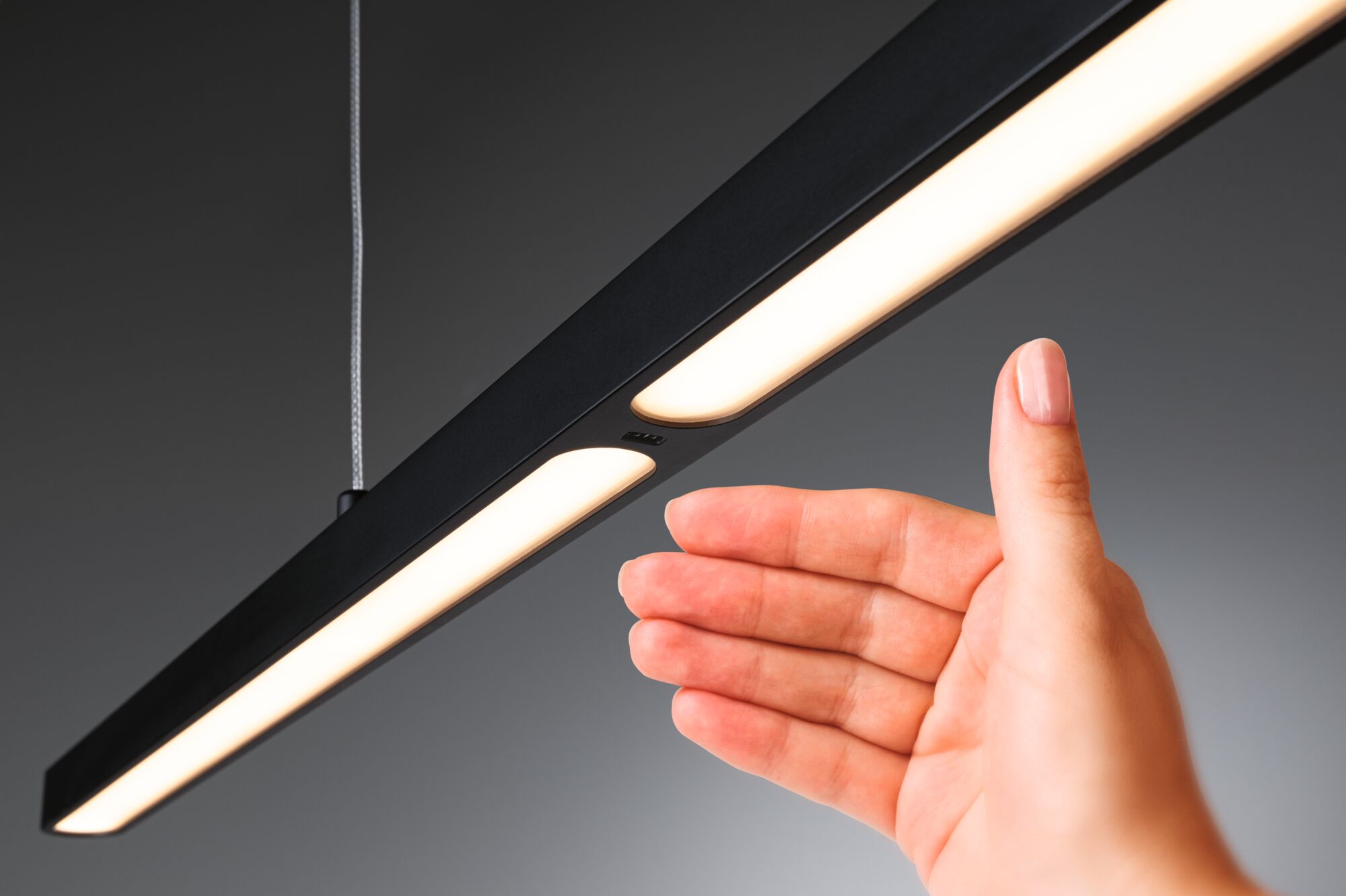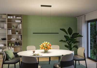 Lampa wisząca Mailo idealnie nadaje się do oświetlenia stołów jadalnych, aneksów kuchennych lub miejsc pracy. Dzięki ponadczasowemu i jednocześnie nowoczesnemu wzornictwu w kolorze matowej czerni idealnie komponuje się z różnymi stylami wnętrz. Dzięki temperaturze barwowej 2700 K zapewnia ciepłe, białe światło, które nie razi w oczy dzięki satynowanemu dyfuzorowi. Przy mocy 3450 lm zapewnia wyjątkowo jasne oświetlenie. W razie potrzeby jasność można płynnie regulować, aby w każdej chwili stworzyć optymalny nastrój oświetleniowy. Zintegrowana funkcja pamięci zapisuje ostatnio wybrane ustawienia oświetlenia do następnego włączenia. Dzięki wbudowanemu czujnikowi zbliżeniowemu umieszczonemu pod dyfuzorem, włączanie i ściemnianie jest łatwe i wygodne za pomocą ręcznego sterowania. Długość zawieszenia można łatwo i bez użycia narzędzi dostosować do własnych potrzeb za pomocą filigranowego kabla. Lampa Mailo to oprawa wisząca Lento wyposażona w czujnik bezdotykowy.